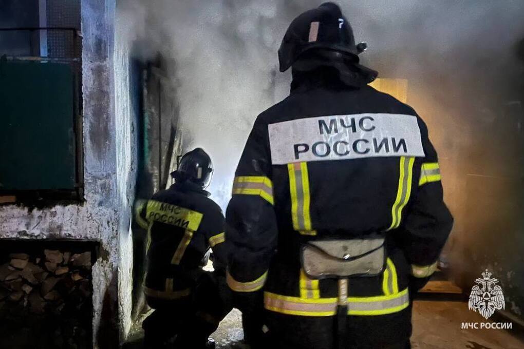 Пожар разгорелся в двухэтажном многоквартирном доме. Спасатели эвакуировали двух пострадавших с ожогами, их госпитализировали.