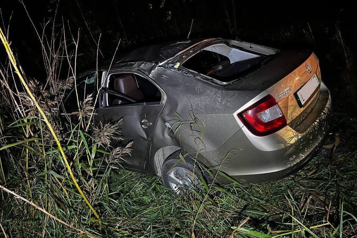 «Шкода Рапид» съехала в кювет в Новгородском округе. фото: Управление Госавтоинспекции УМВД РФ по Новгородской области