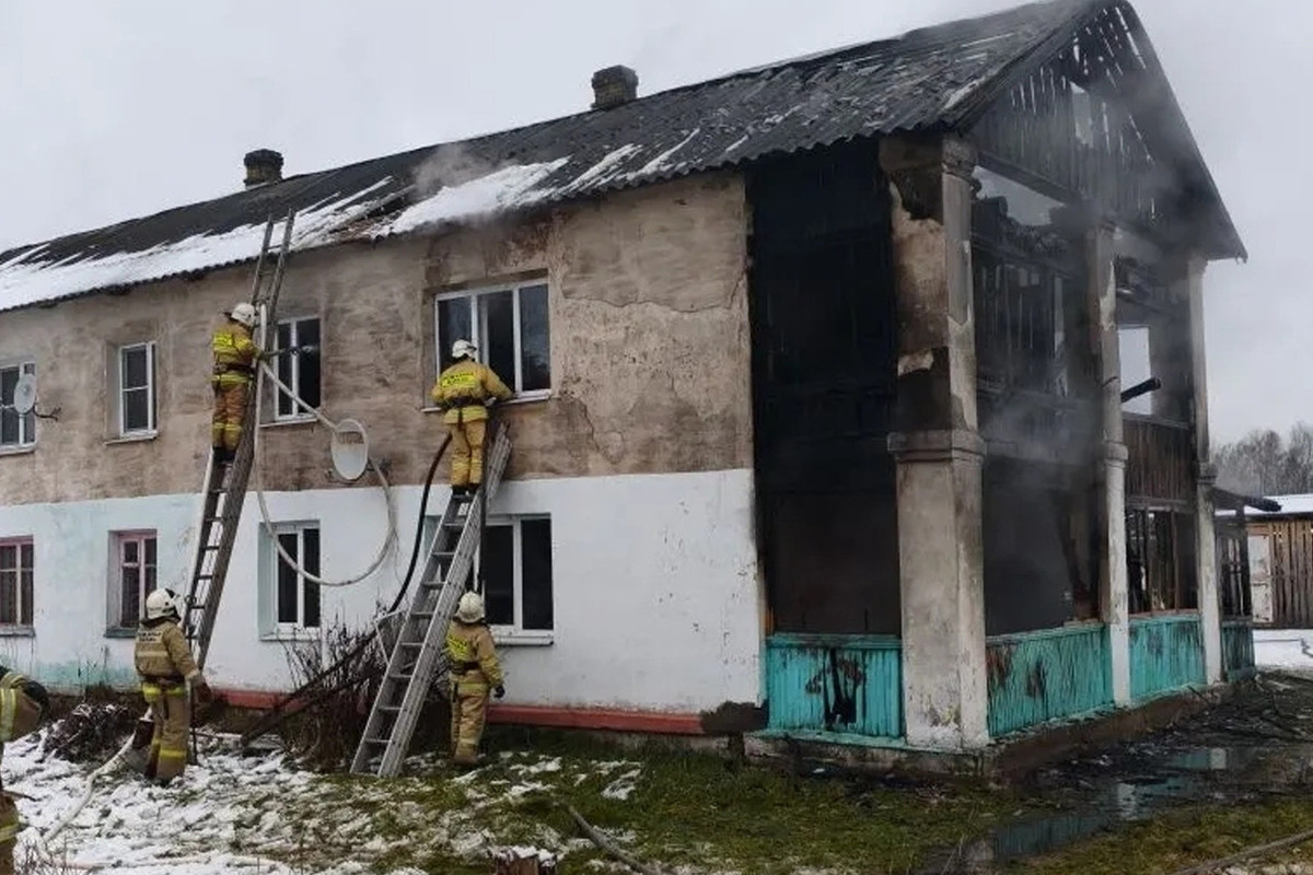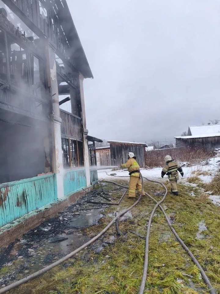 В Парфинском округе пожарные в течение часа тушили двухэтажный дом. фото: пресс-служба Управления защиты населения от чрезвычайных ситуаций и по обеспечению пожарной безопасности Новгородской области
