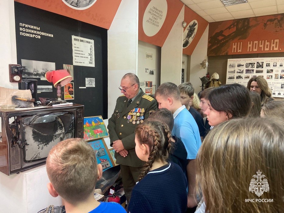 Во время экскурсии школьники познакомились с разными видами огнетушителей, примерили средства индивидуальной защиты органов дыхания и вспомнили номера телефонов экстренных служб.