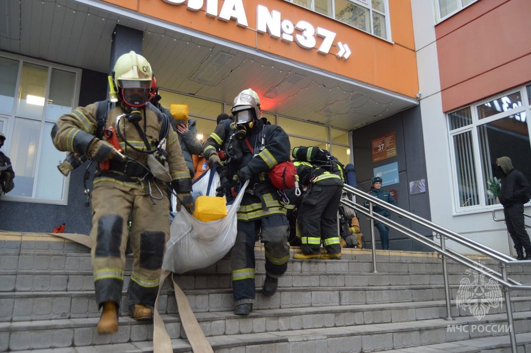По легенде учений, ЧП произошло на втором этаже в школьной библиотеке. Пламя охватило помещение с книгами. Учителя оперативно покинули здание до прибытия спасателей, но шесть сотрудников учебного заведения не смогли выбраться: они оказались в разных корпусах здания.