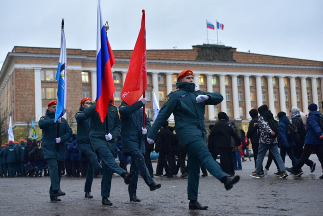 На парад вышли юные новгородцы, состоящие в детских и молодежных патриотических организациях. Участников парада приветствовал мэр Великого Новгорода Александр Розбаум, который напомнил, что сегодняшний парад – дань памяти нашим героическим предкам, которые в 1941 году, пройдя парадным шагом по Красной площади, отправились на фронт.