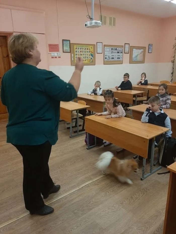 Умная собака Алиса провела урок для младшеклассников Великого Новгорода