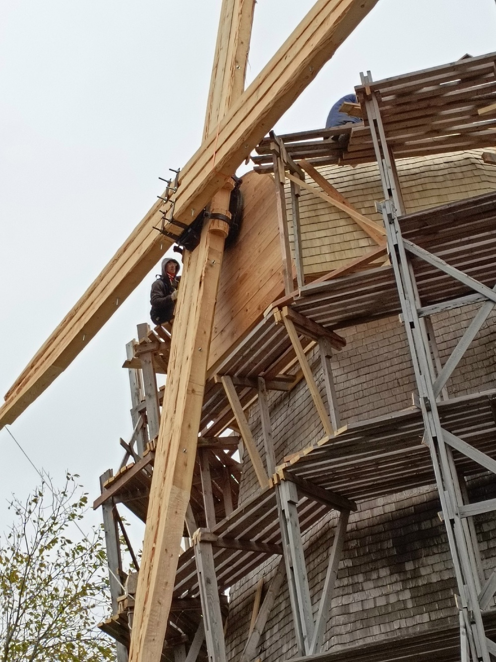 8 ноября одна бригада реставраторов еще занималась реставрацией лопастей мельницы, а другая уже принялась разбирать забор и убирать строительный мусор. Все выходные специалисты трудились, наводя «последние штрихи». Еще совсем немного — и мельница предстанет во всей своей красе.