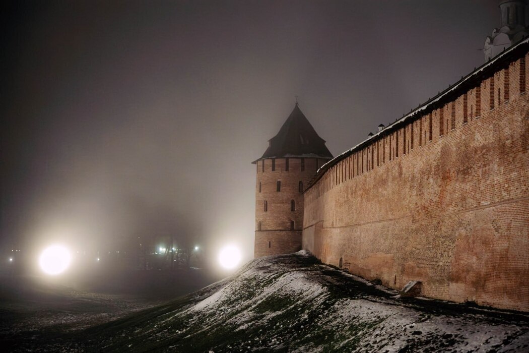 Новгородский кремль в дымке туманного декабрьского вечера: завораживающие кадры зимней магии