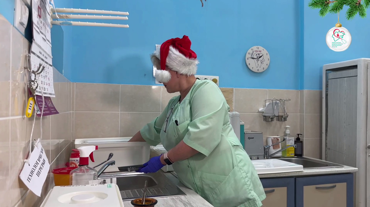 В преддверии Нового года сотрудники Стоматологической поликлиники Центральной городской больницы Великого Новгорода решили создать пациентам новогоднее настроение и не только нарядили новогоднюю елку, но и надели вместо медицинских шапочек новогодние колпачки, сообщила пресс-служба министерства здравоохранения Новгородской области.