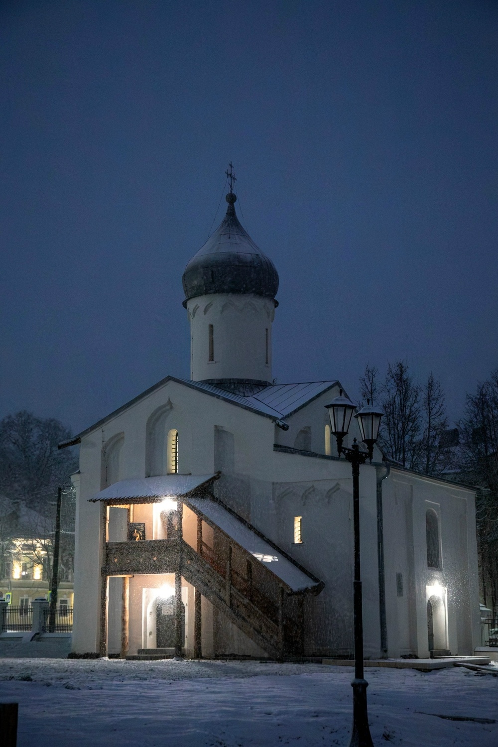 А вечером погода преподнесла новгородцам настоящий новогодний подарок — долгожданный снегопад, укрывший город волшебным покрывалом. Фотографии заснеженного Великого Новгорода опубликовала пресс-служба Новгородского музея-заповедника.