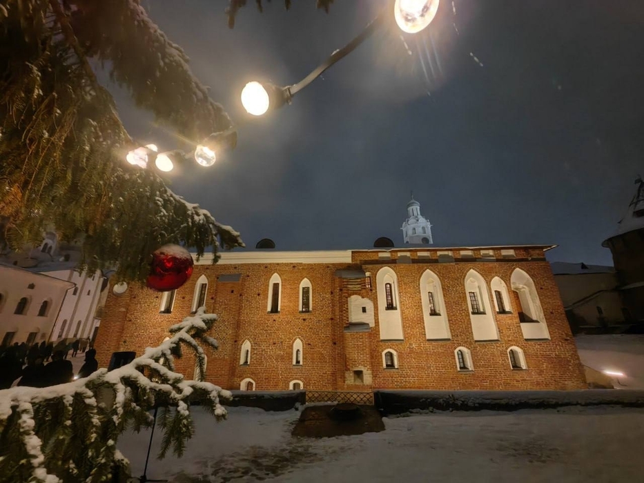 Во Владычном дворе Новгородского кремля 28 декабря зажгли архитектурную подсветку. Казалось, погода специально «включила» в этот день «режим зимы». Свежевыпавший белый снег усиливал сияние фасадов Владычной палаты, Лихудова корпуса, церкви Сергия Радонежского и Софийского собора, сообщила пресс-служба Новгородского музея-заповедника.