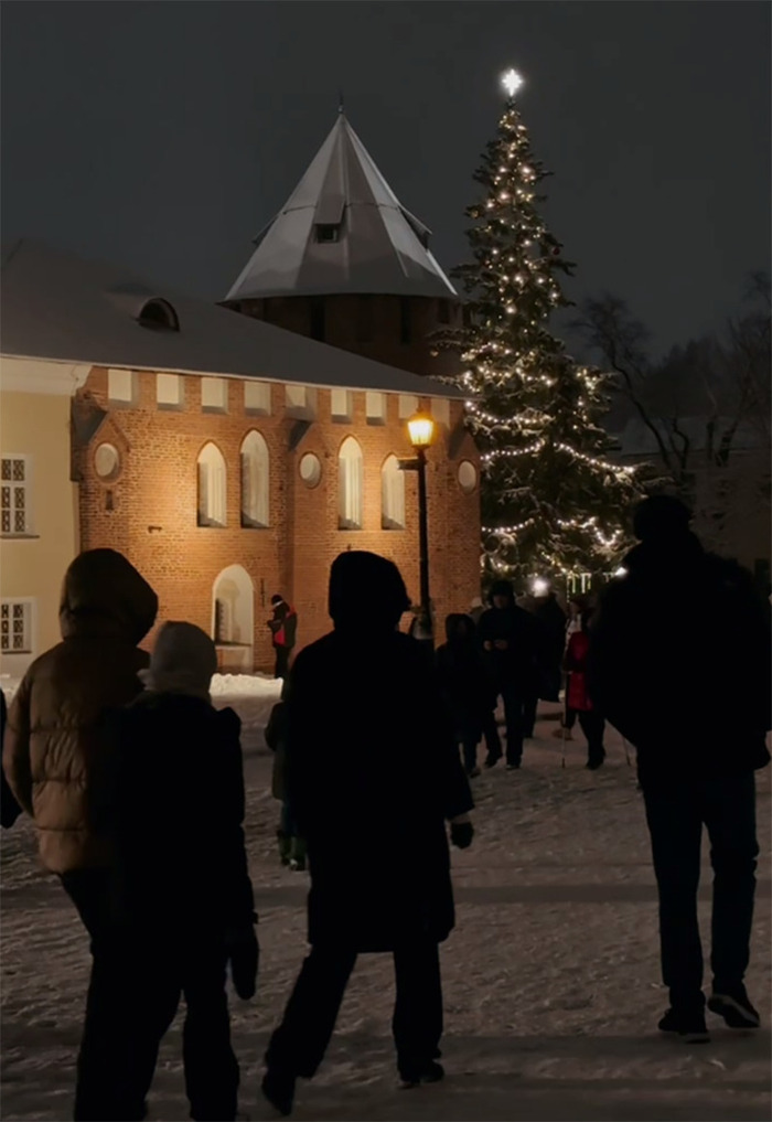 Во Владычном дворе Новгородского кремля 28 декабря зажгли архитектурную подсветку. Казалось, погода специально «включила» в этот день «режим зимы». Свежевыпавший белый снег усиливал сияние фасадов Владычной палаты, Лихудова корпуса, церкви Сергия Радонежского и Софийского собора, сообщила пресс-служба Новгородского музея-заповедника.