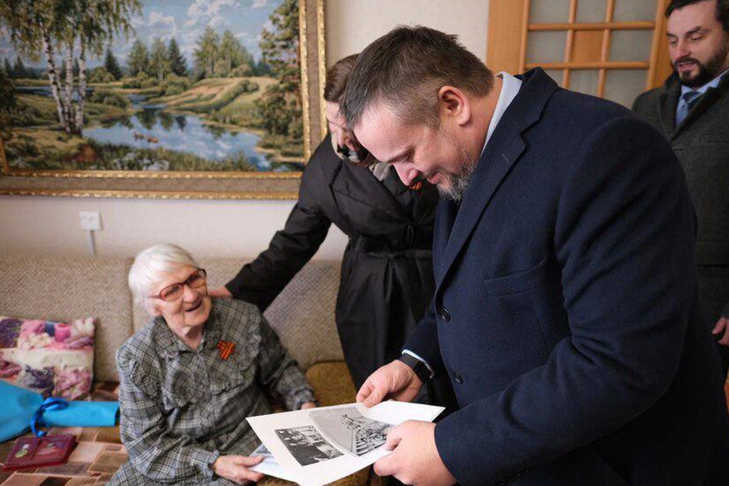 В Старой Руссе глава региона поздравлял Антонину Васильевну Терехову. Она занималась восстановлением города после изгнания из него врага. Ветеран приложила руку к строительству многих домов, школ, детских садов, а также больницы, поликлиники и роддома.
