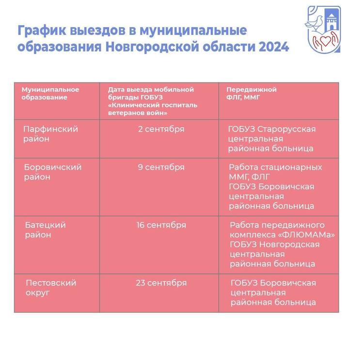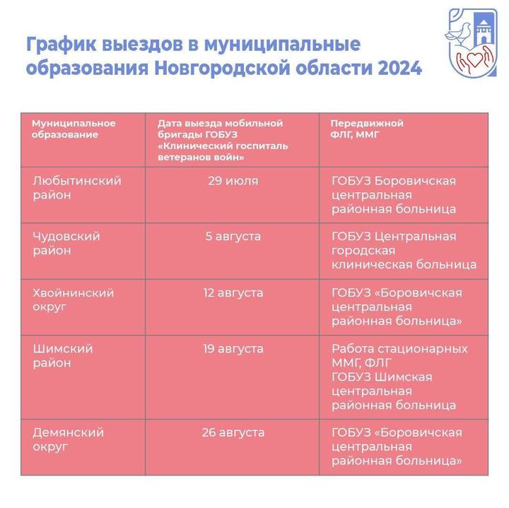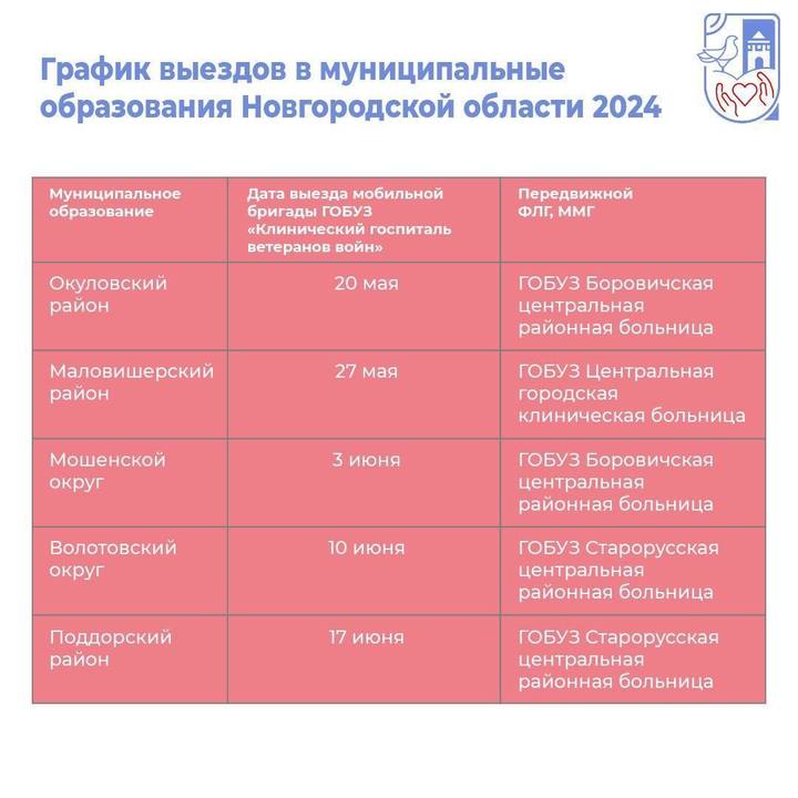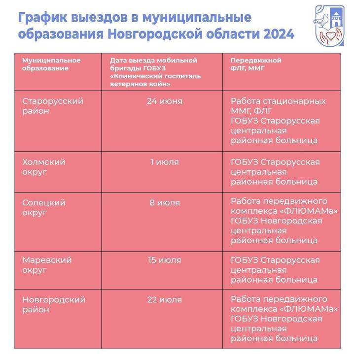 За период с мая по сентябрь мобильная медицинская бригада посетит все районы Новгородской области.