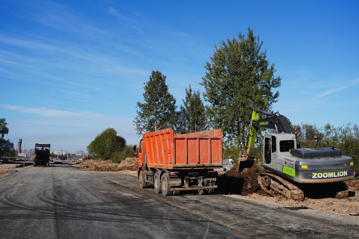 Строители начали укладывать первый слой асфальта, ведут прокладку сетей ливневой канализации и работают над подключением уличного освещения.