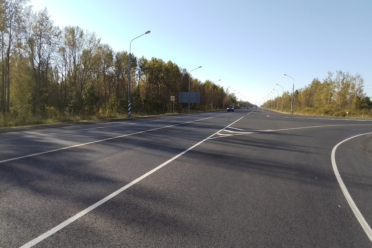 Работы велись на участке от границы Великого Новгорода до поворота в сторону деревни Богданово. Подрядчик восстановил выравнивающий и верхний слои асфальта, произвел планировку и досыпал обочины, нанес разметку из термопластика.