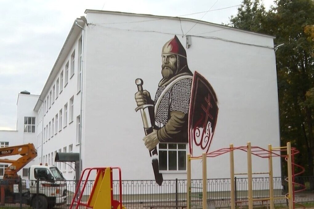 Очертания первого мурала уже появляются на фасаде школы №8 в Великом Новгороде. Художник Дмитрий Север начал работу над масштабным изображением, посвященным защитникам Отечества. Значительная часть будущего мурала – собирательный образ воина, который защищает свою землю. В нем прослеживаются черты Александра Невского.