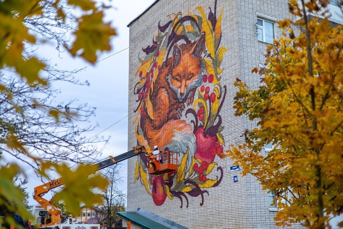 В Валдае московский художник почти закончил работу над новым муралом
