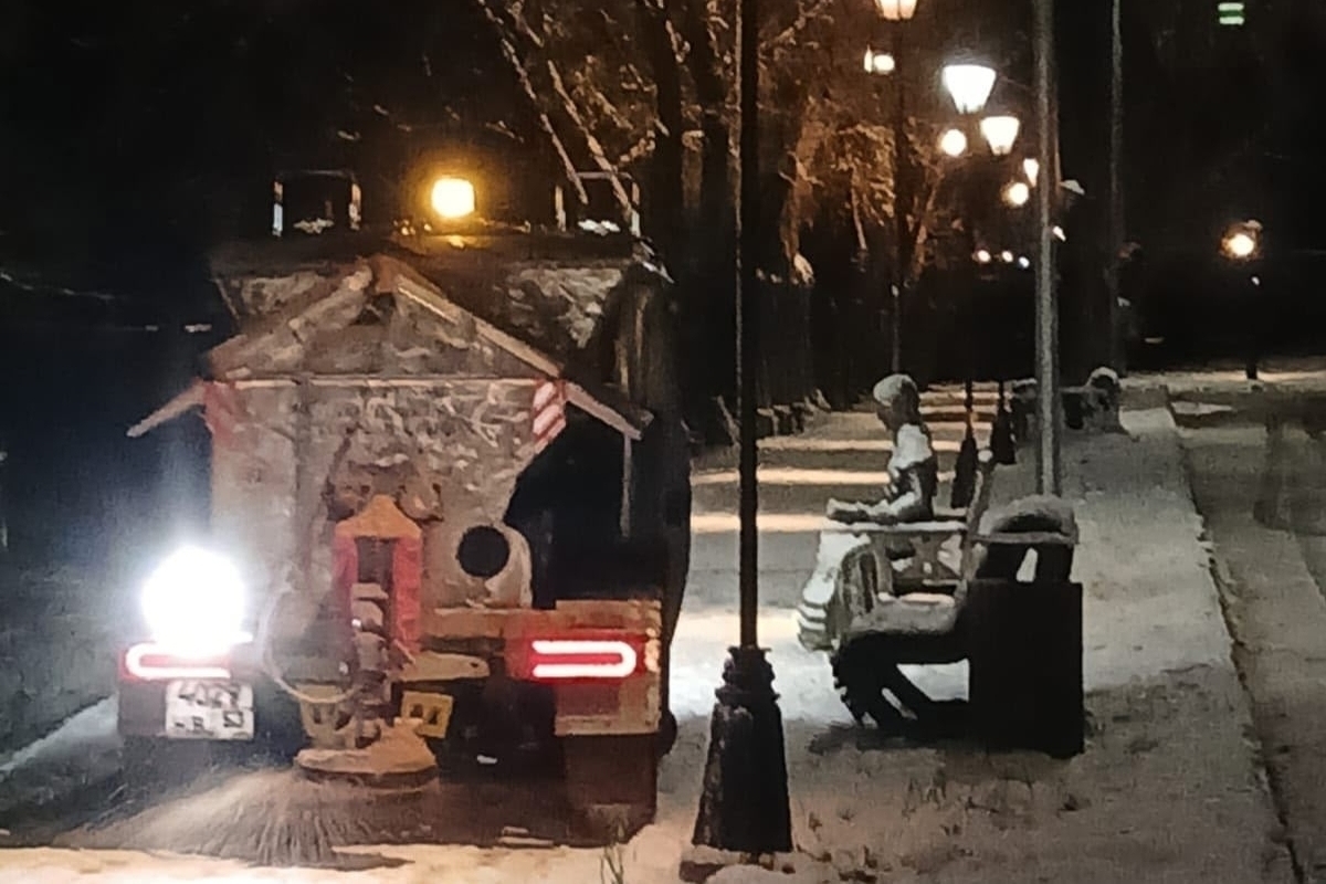 Улицы и тротуары очищают от снега и обрабатывают противогололедными материалами. Там, где не проходит техника, снег убирают вручную.