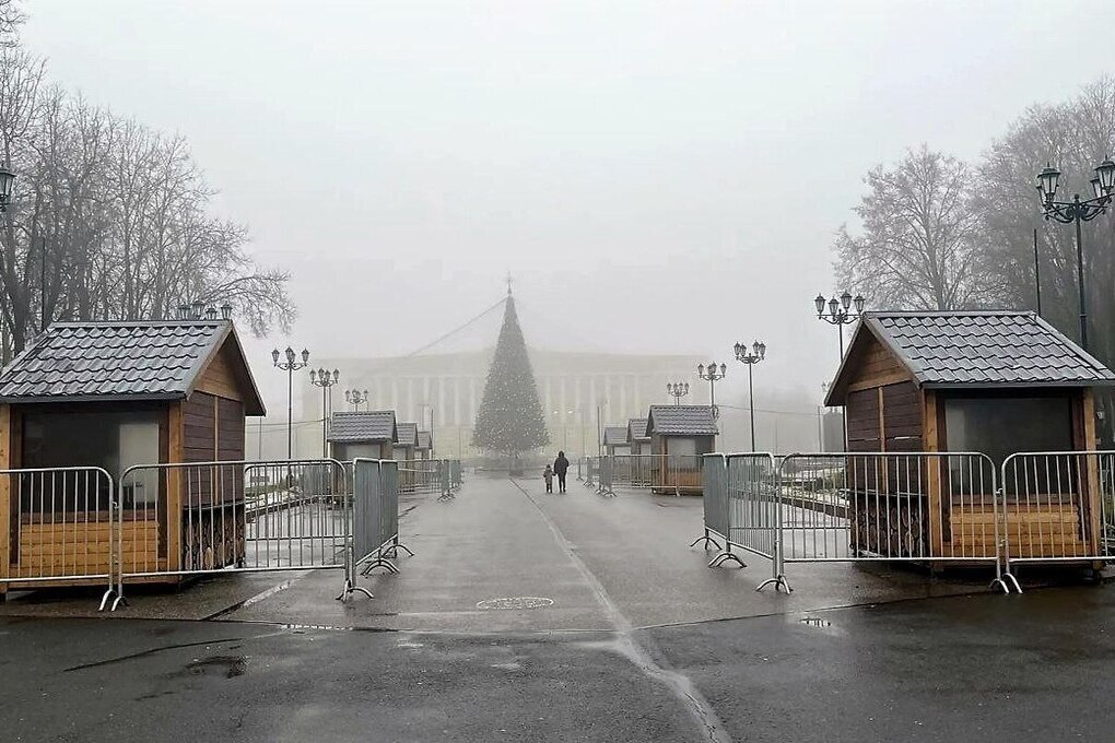 На площади Победы-Софийская Великого Новгорода установили 8 ярмарочных домиков