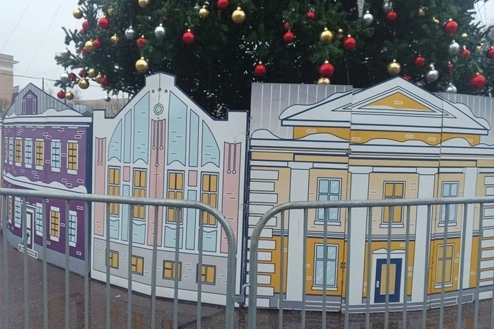 В Великом Новгороде установили новогоднее ограждение в виде домиков