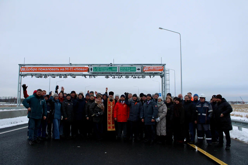 Генеральный директор ООО «ЕТС» Вячеслав Ракчеев и председатель правления компании «Российские автомобильные дороги» («Автодор») Вячеслав Петушенко дали старт движению по новой транспортной развязке к аэропорту Пулково на скоростной трассе М-11 «Нева».
