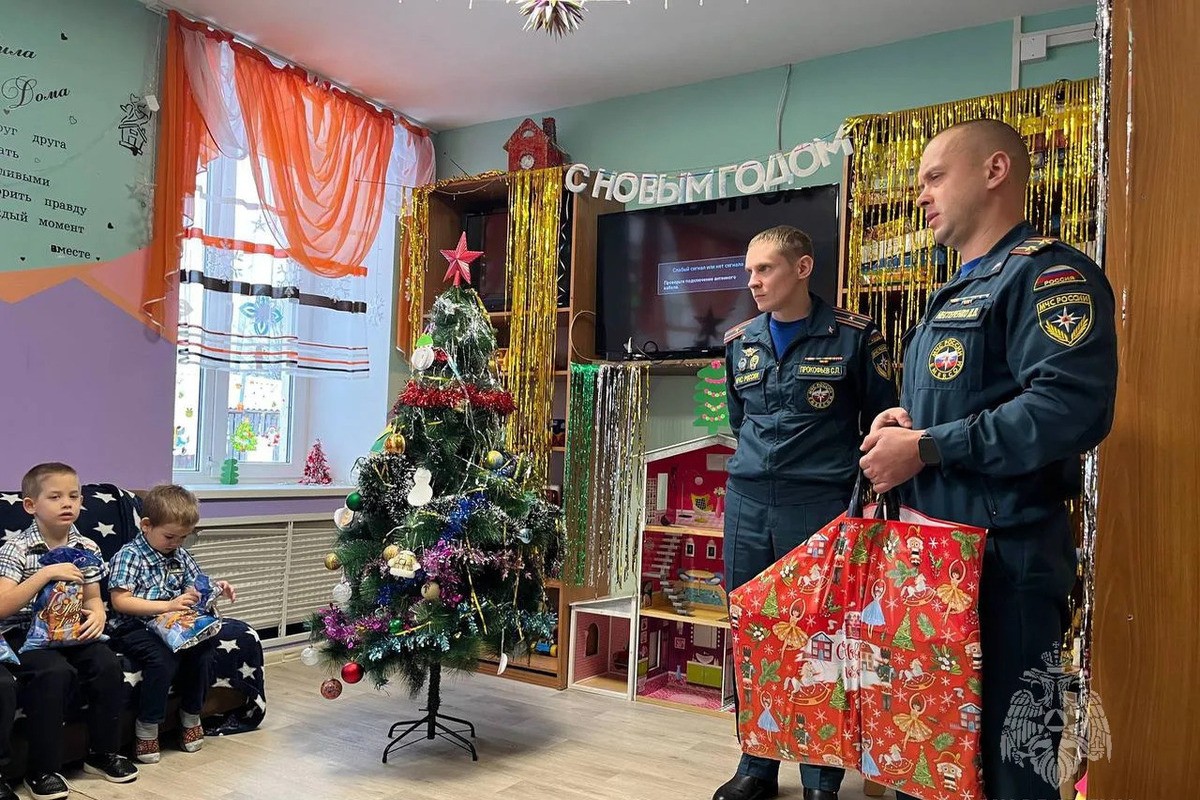 Спасатели поздравили детей с Новым голом и вручили подарки. Встреча прошла в теплой и сказочной атмосфере. Дети читали стихи, водили хороводы с пожарными волшебниками. Специалисты также напомнили детям важные правила безопасности.